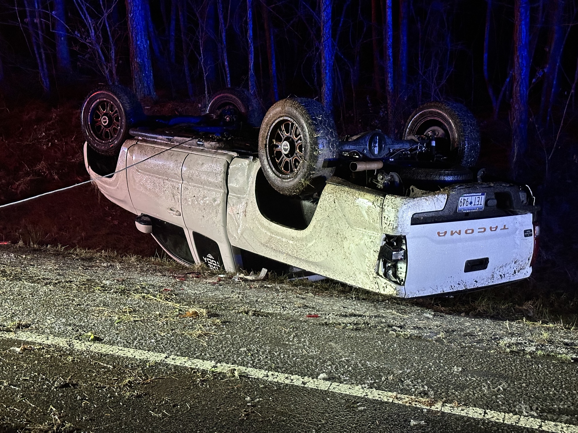 Around 10 p.m., a deputy with the Moore County Sheriff’s Office came up on an overturned Toyota Tacoma along the highway.